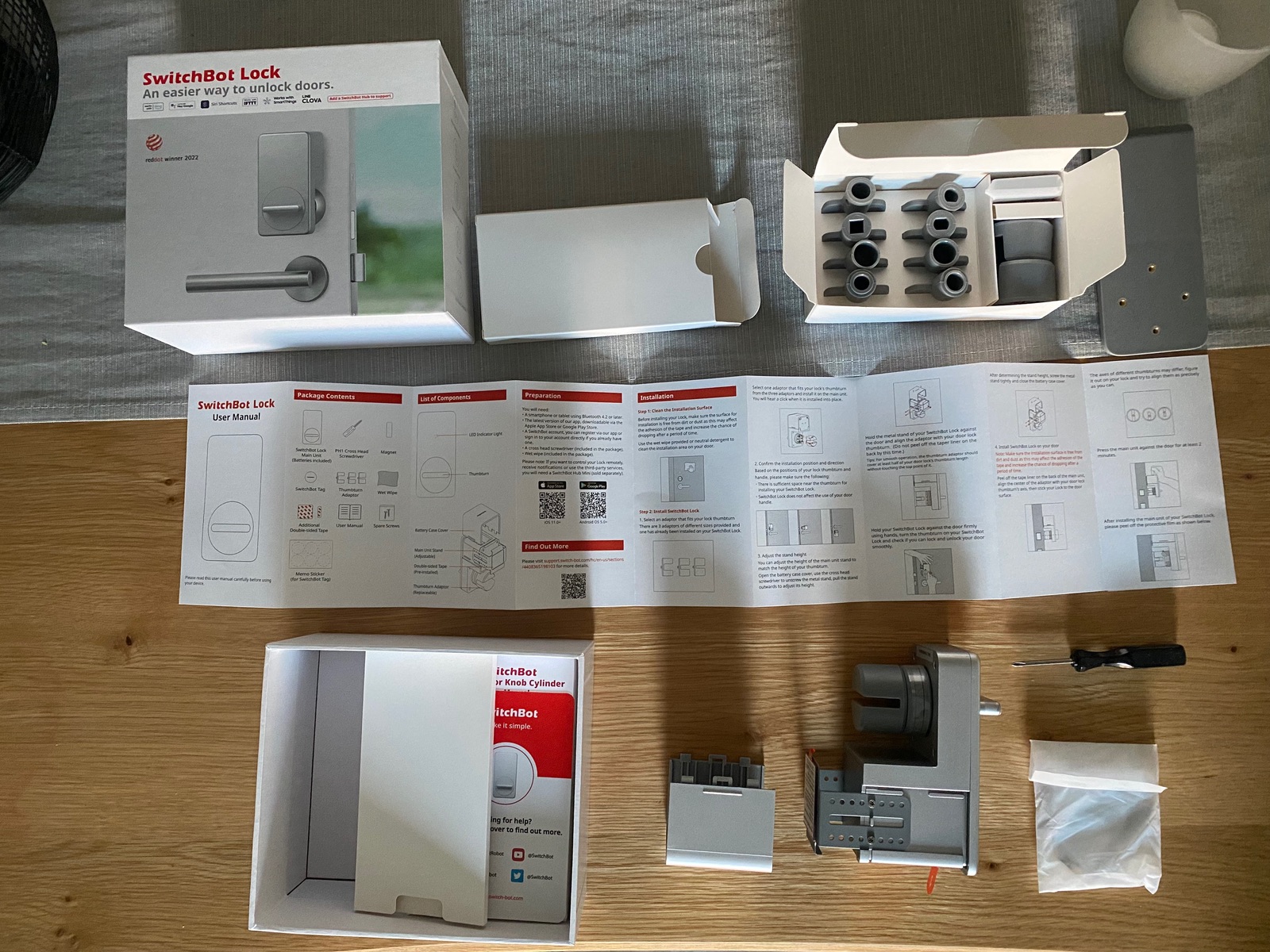 Im Packet ist jede menge Zubehör, damit man das Lock an seine Haustür/Schließsysteme anpassen kann.