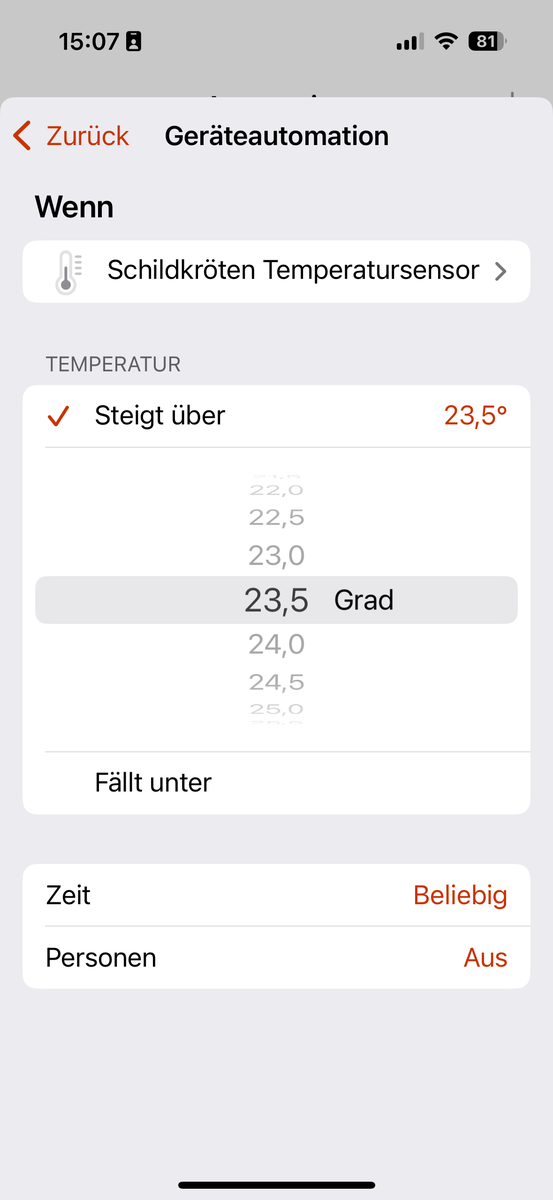 Ich habe einen QingPing Temperatur Sensor, der über eine Automation eine Meross Steckdose ein- und ausschalten soll. Die Temperatur wird immer korrekt angezeigt. Die Prüfung der Automation ist ebenfalls erfolgreich. Nur wenn die Temperatur Schwellenwerte über- bzw. unterschritten werden, wird die Automation nicht angestoßen. Kann mir jemand ein Tipp geben?