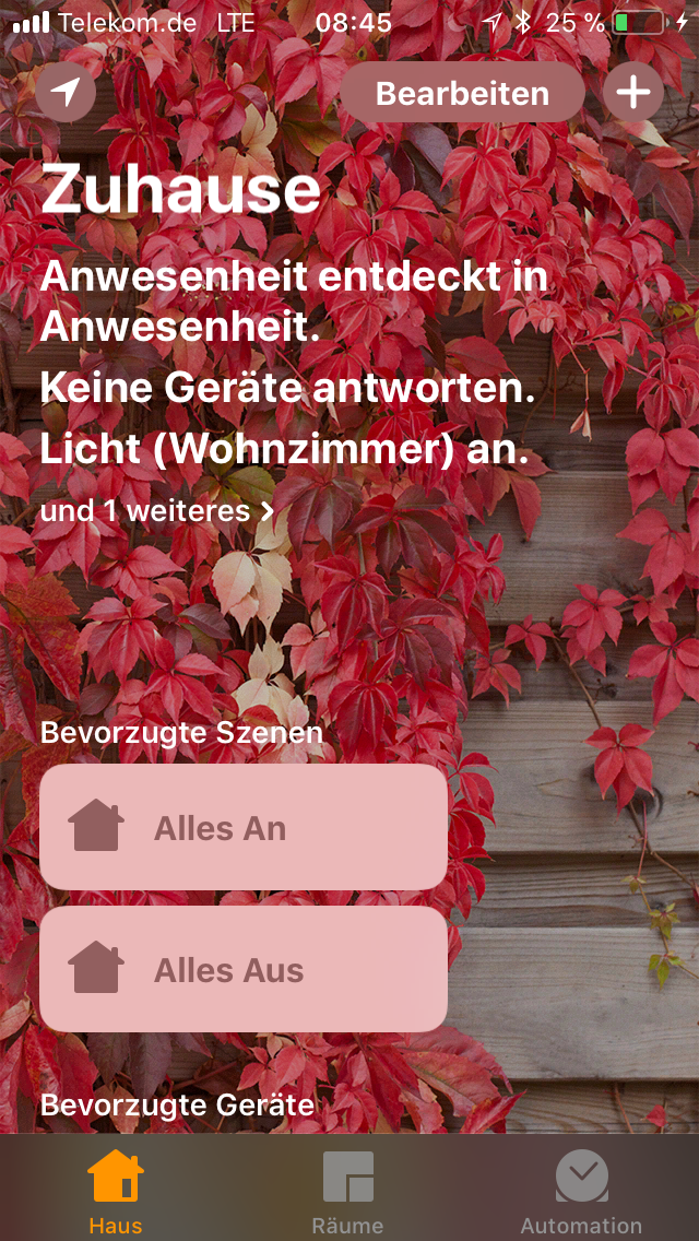 die Anwesenheitserkennung wird erst ab iOS 11 unterstützt