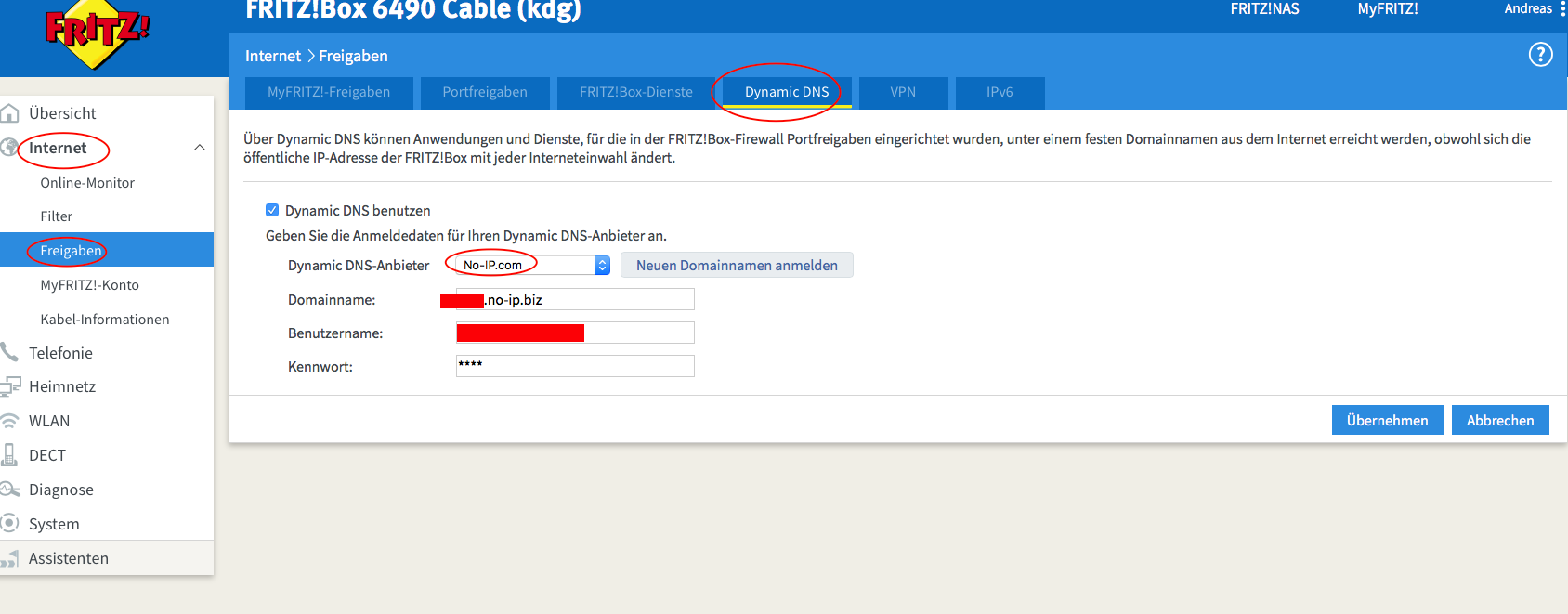 Damit dein Router die wechselnde IP Adresse mit der Dynamic DNS von no-ip verknüpfen kann, muss das natürlich irgendwo konfiguriert werden. Denn woher soll dein Router wissen, dass du bei no-ip ein Konto und eine Dynamic DNS hat.
