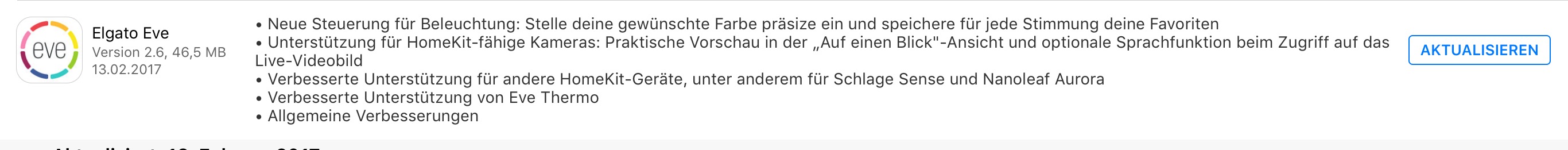Gerade gesehen dass die Eve App eine Aktualisierung bekommen hat mit doch sehr interessanten Neuerungen.