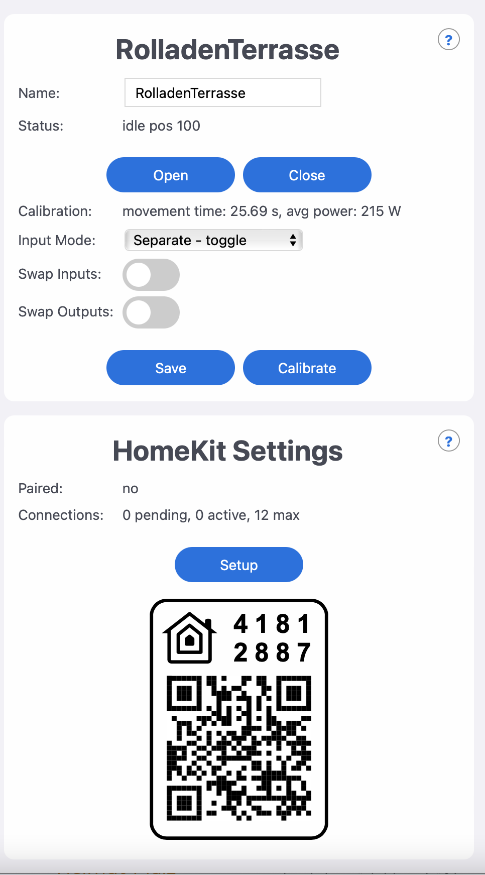 Die homebeige habe ich auch per QR Code in apple HomeKit hinzugefügt.