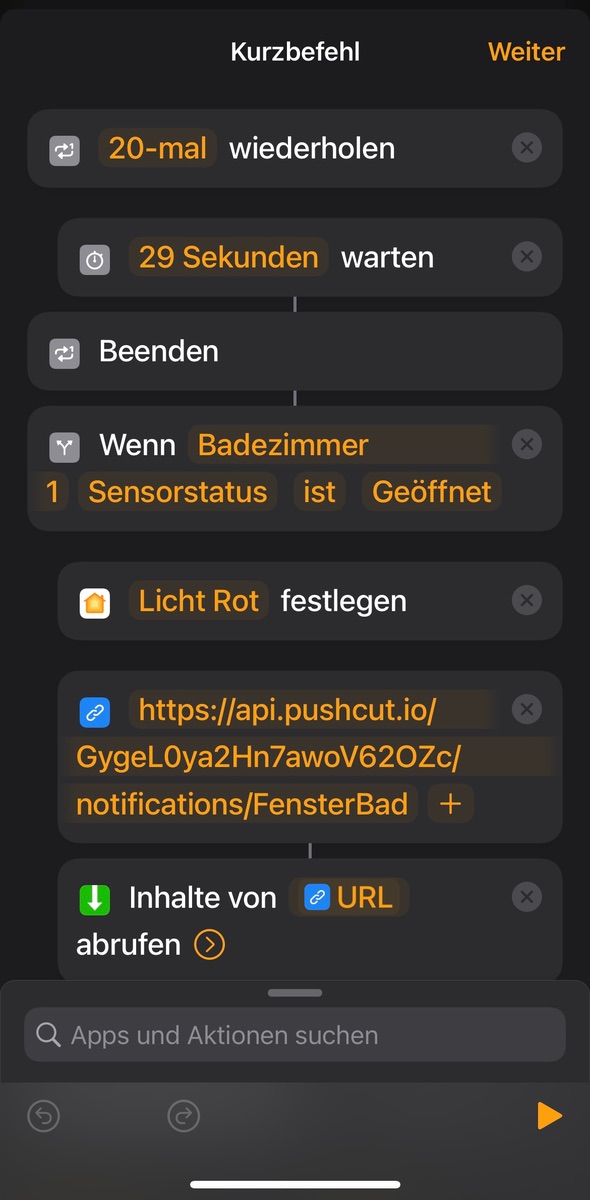 Hallo zusammen. Bin neu bei den Kurzbefehlen und auch neu hier. Mein Anliegen ist es, mit Click auf den Kurzbefehl alle abrufbaren Temperaturen (Thermostate, Bewegungsmelder) gelistet mit jeweiligem Raum zu bekommen. Bekomme es nicht gesammelt hin, immer nur einzelne Räume.