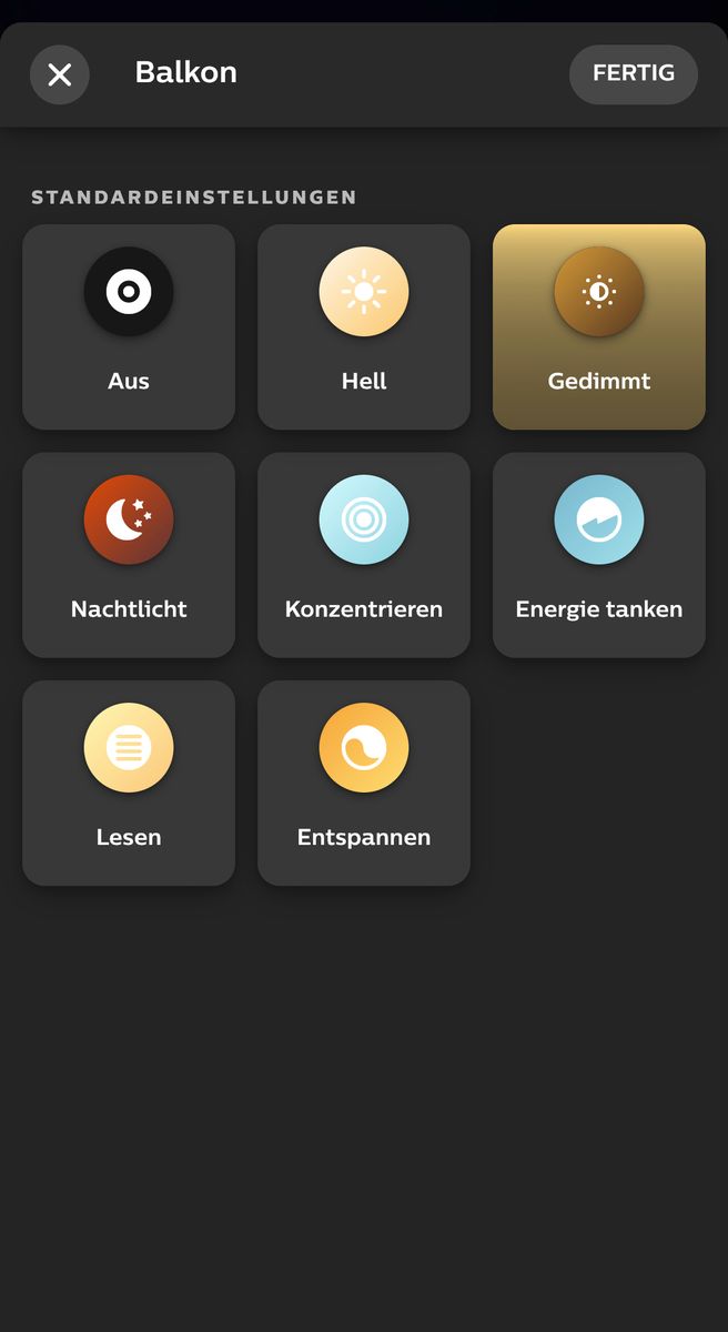Jetzt würde ich gern den FOH Schalter zum ein/aus schalten genau wie den original Hue switsch konfigurieren, sprich EINE Taste schaltet die Lampe aus und ein, die zweite Taste genau das gleiche. Bekomme das aber beim FOH Schalter in der HUE App nicht hin. In Home geht das, da hab ich das im Wohnzimmer schon gelöst, allerdings schaltet es sich direkt in der Hue App schneller, zuverlässiger.