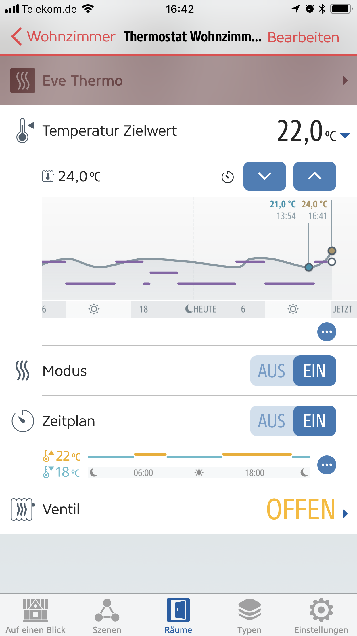 Nachdem ich den Offset Wert herabgesetzt habe kühlt der Heizkörper tatsächlich aus. Aber mal ne Frage.... sollte in der Eve App das Ventil als geschlossen angezeigt werden?
