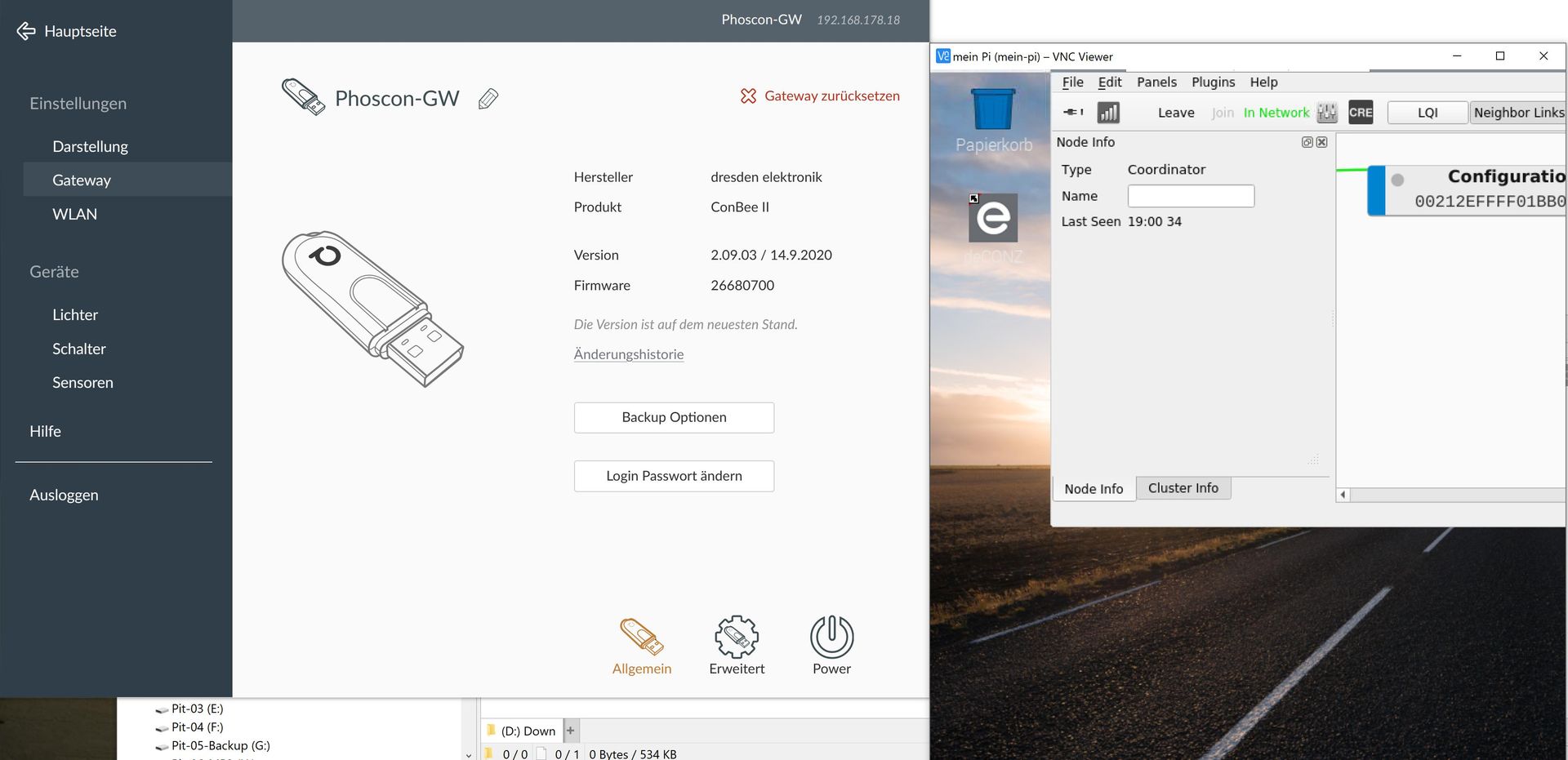 fie phoscon app geht um auf das gateway raspbee oder conbee zu kommen geht immer auf.