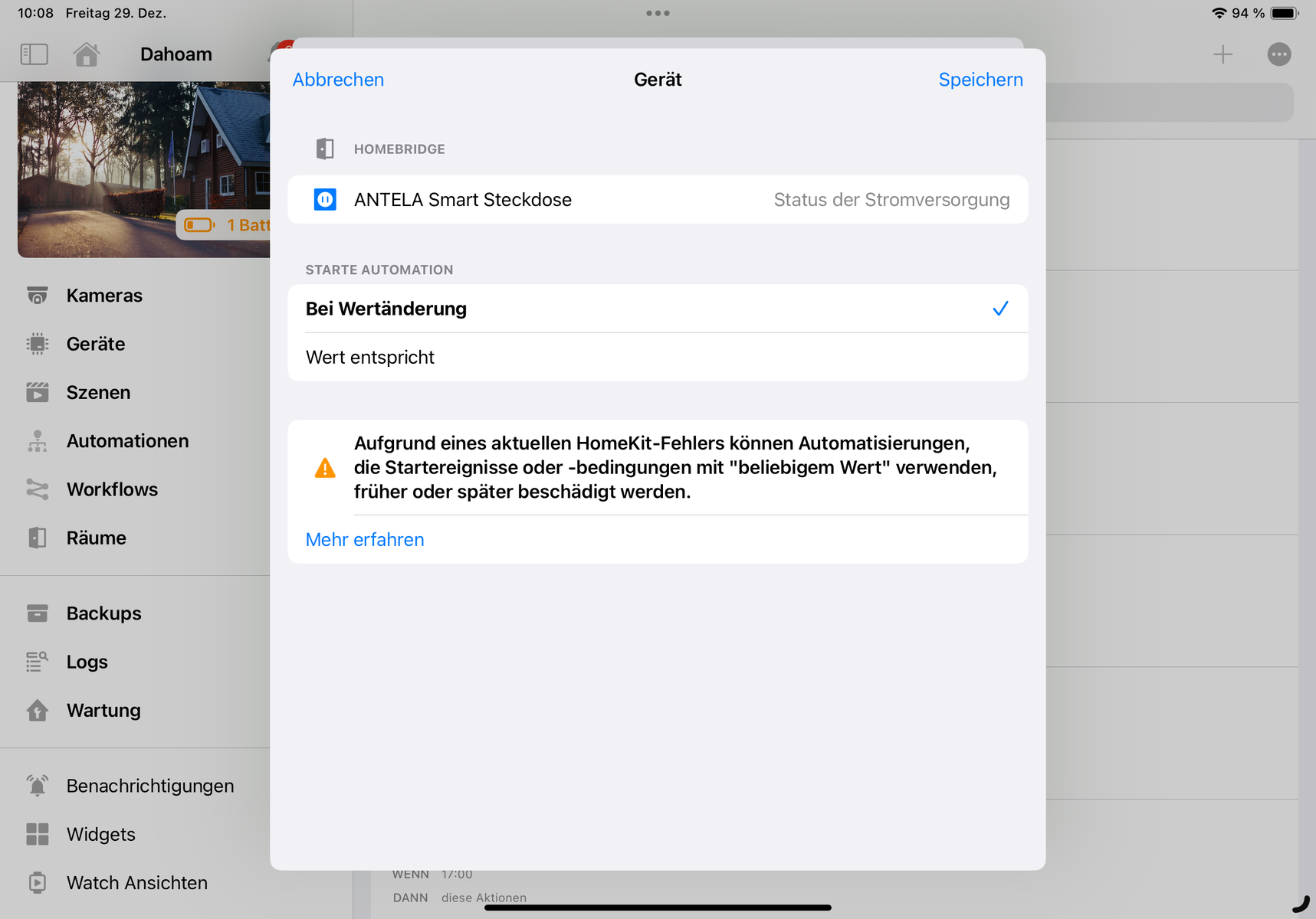Bei der Eve Energy im Vergleich aktualisiert sich der aktuelle Verbrauch problemlos und die Automation und Benachrichtigung über Controller für HomeKit funktioniert damit einwandfrei auch ohne Home+.