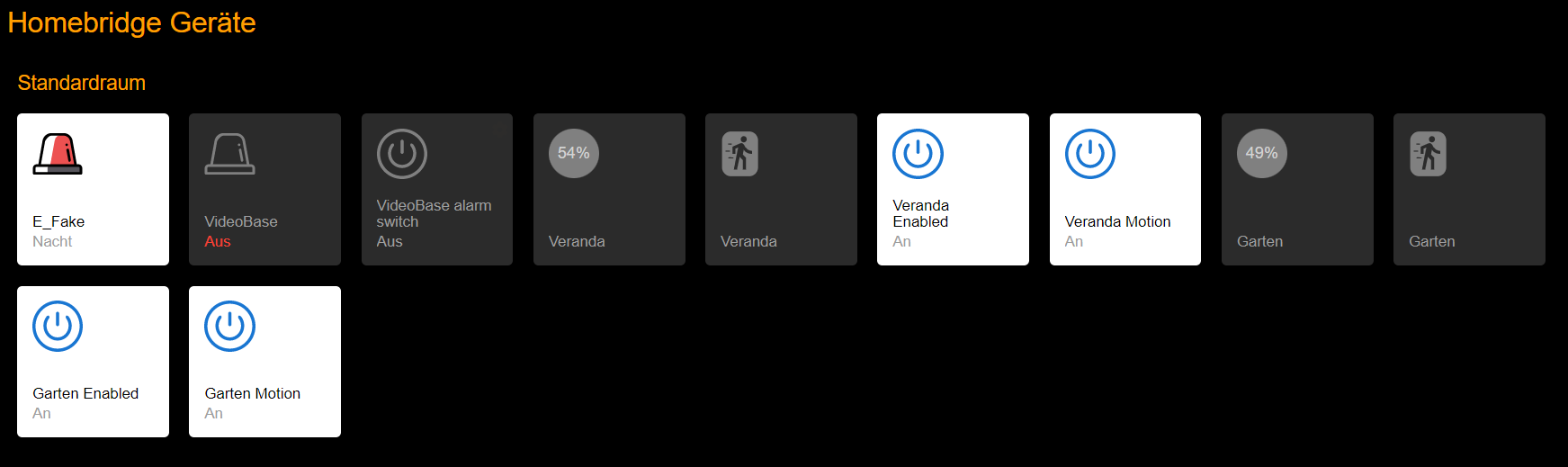 um die Daten meiner Kameras aus Homebridge in ein anderes System (hier Openhab 3) zu übergeben, habe ich das Plugin "openhab2-complete" installiert. Es geht mir hier nicht um Videostreams, sondern um das Schalten (und Anzeigen) von Zuständen, z.B. "aktiviert", "deaktiviert" etc.