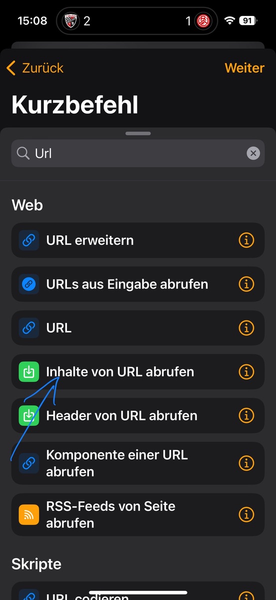 HomeApp - Automation - "+" - "Wenn ein Sensor etwas entdeckt" - "Weiter" - Deinen Bewegungsmelder auswählen "Weiter" - Entdeckt Anwesenheit auswählen - "Weiter" - ganz unten "In Kurzbefehl konvertieren" - Szene und Geräte weg xen(Anhang 1) - Suche "Url" Url auswählen (Anhang2) - Deine Url eintragen (Anhang3) - "Url" Inhalte von Url abrufen auswählen (Anhang4) - "Weiter" und fertig