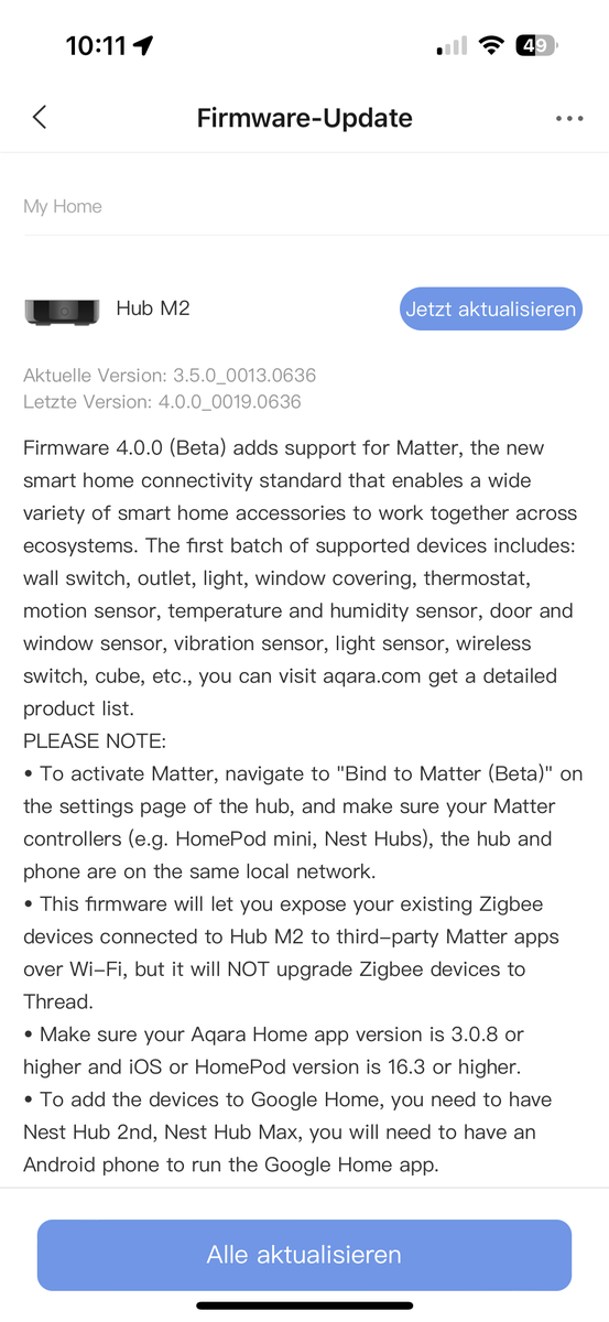 in HomeKit wird mir der Aqara Hub M2 angezeigt.