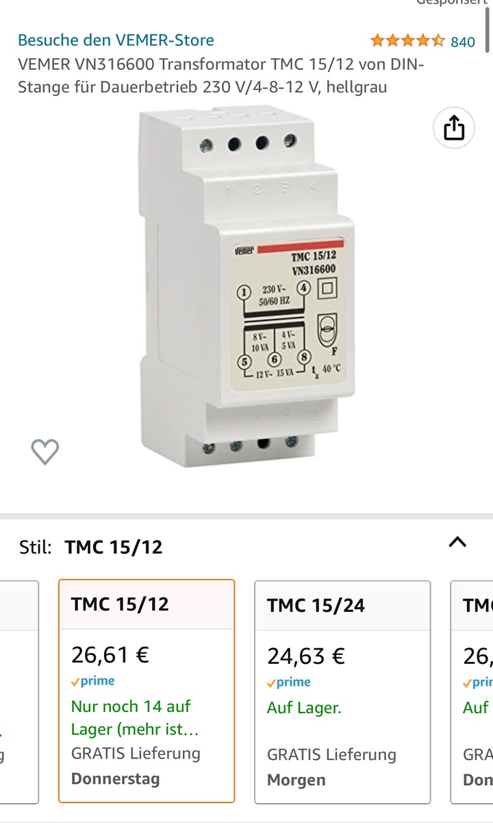 Ich hab im Anhang nochmal nen Trafo hochgeladen mit 12V und 15A. Mein Gong dürfte der im Anhang sein (sieht zumindest identisch aus). Kannst du mir sagen, ob das passt?
