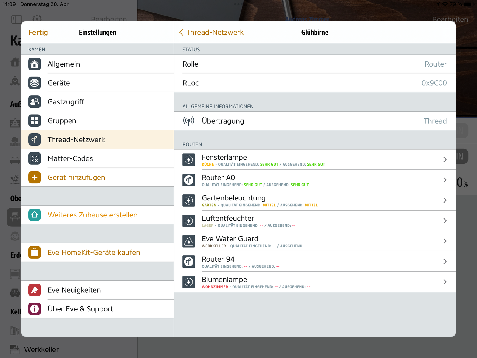Mir werden nur noch die Routen zwischen den thread-Geräten angezeigt, wenn ich über den grade aktualisierten Zwischenstecker einsteige.