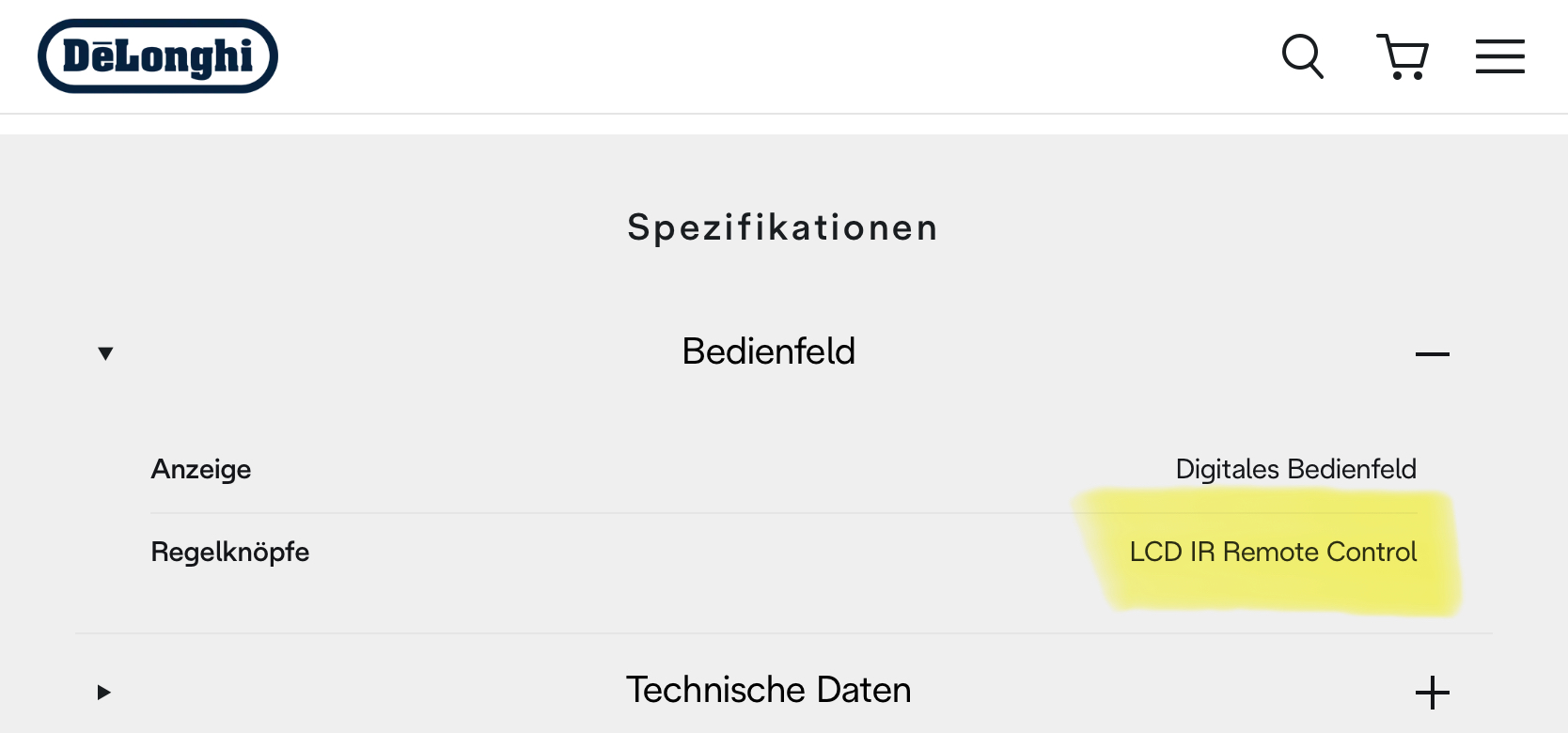In einer Rezession bei Amazon hat de Longhi für das Gerät eine IR Fernbedienung bestätigt.
