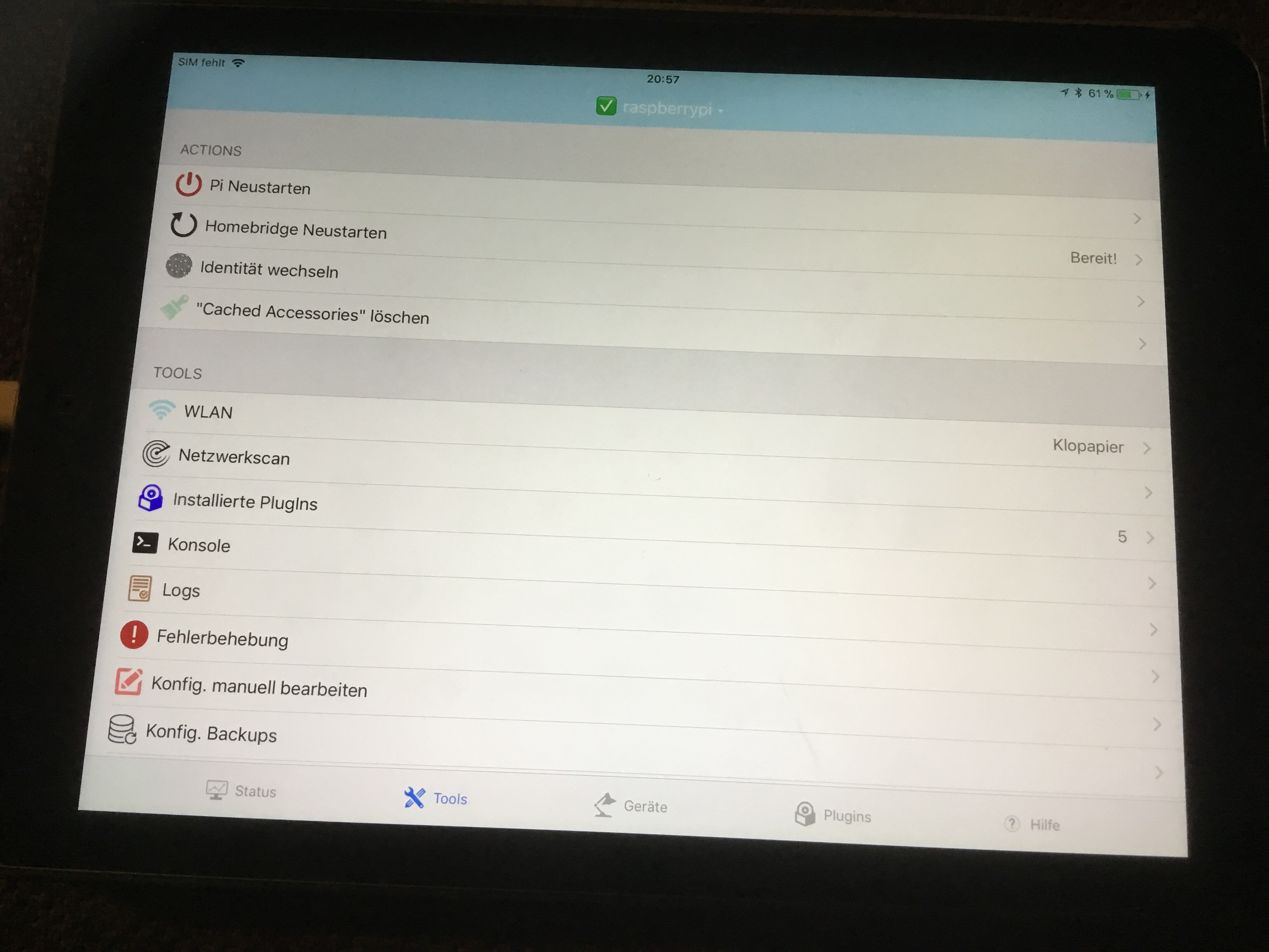 Und das klappt so garnicht, dachte mit den Plugin von Ikea ..... ganz einfach aber weit gefehlt. Wenn Plugin installiert ist ( ob ich das richtig mache weiß ich auch nicht) ist die Anbindung der pi zur homekit weg! Nun hieß es ich brauche das Plugin von Homebridge! Das finde ich nicht in der Raspberry App