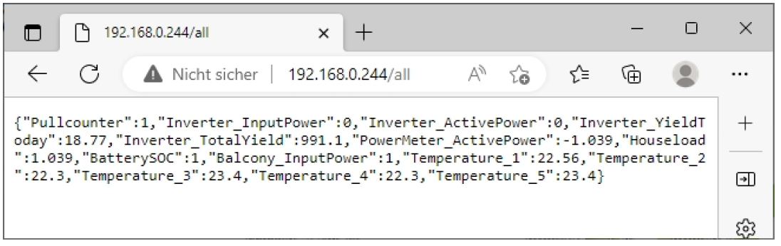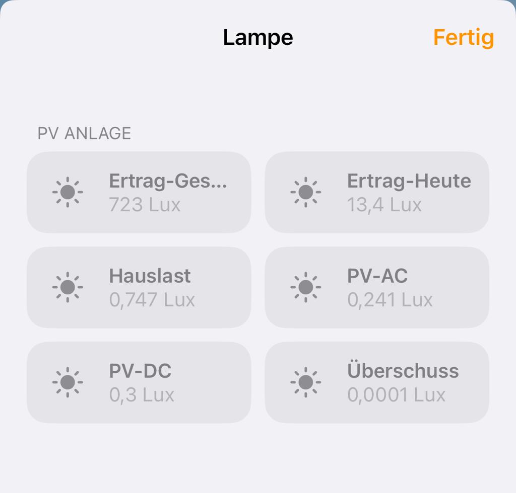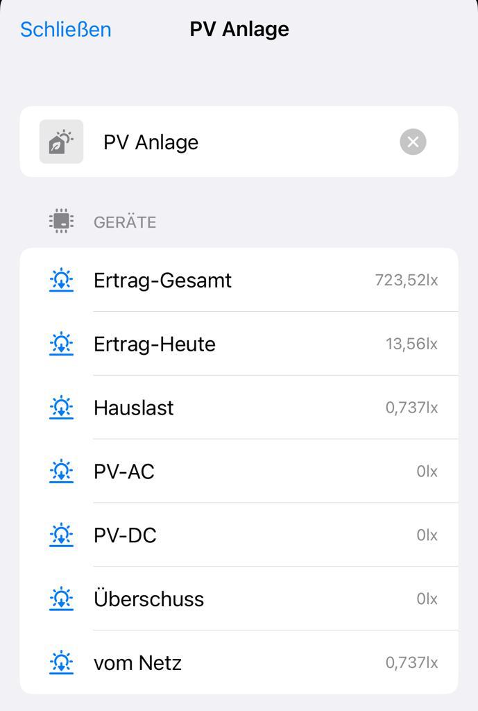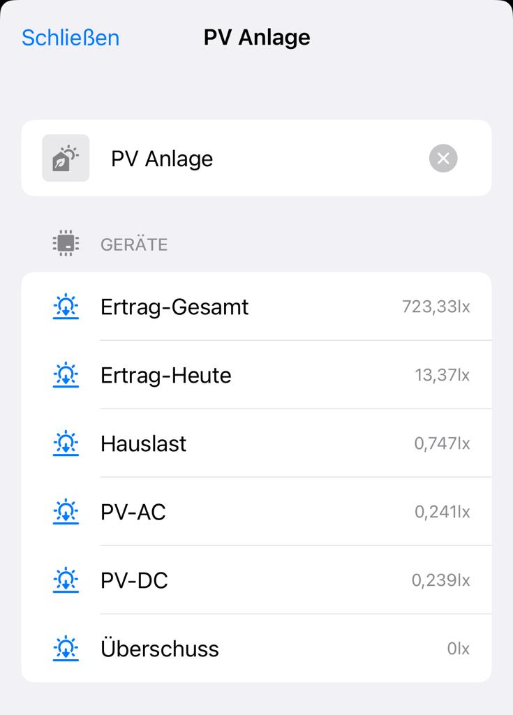 Diese Werte werden alle geliefert. Ich benutze allerdings den BOPV.mini dazu, der diese Daten wie oben im Screenshot bereitstellt. Du kannst den Wechselrichter aber auch über Modbus auslesen. Ich denke aber, dass das mit der Homebridge etwas schwieriger wird.