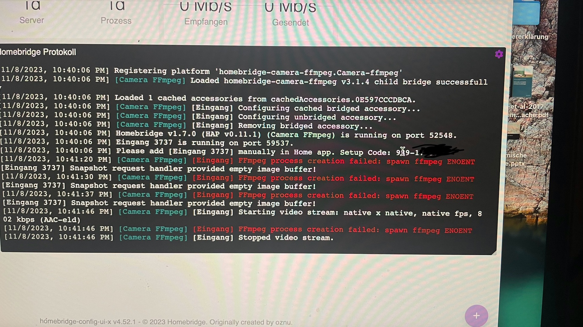 Der findet das nicht „command not found“ aber in Homebridge ist der FFmpeg Camera installiert