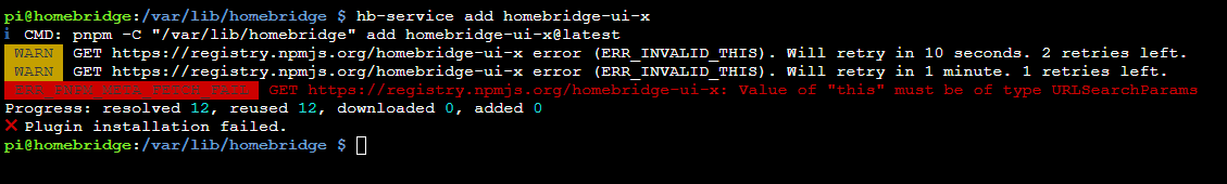 Homebridge lässt sich nicht aktualisieren KevinKudo 21. November 2023 Zuerst vielen vielen Dank für die schnelle Rückmeldung und die Hilfe.nächstes Problem