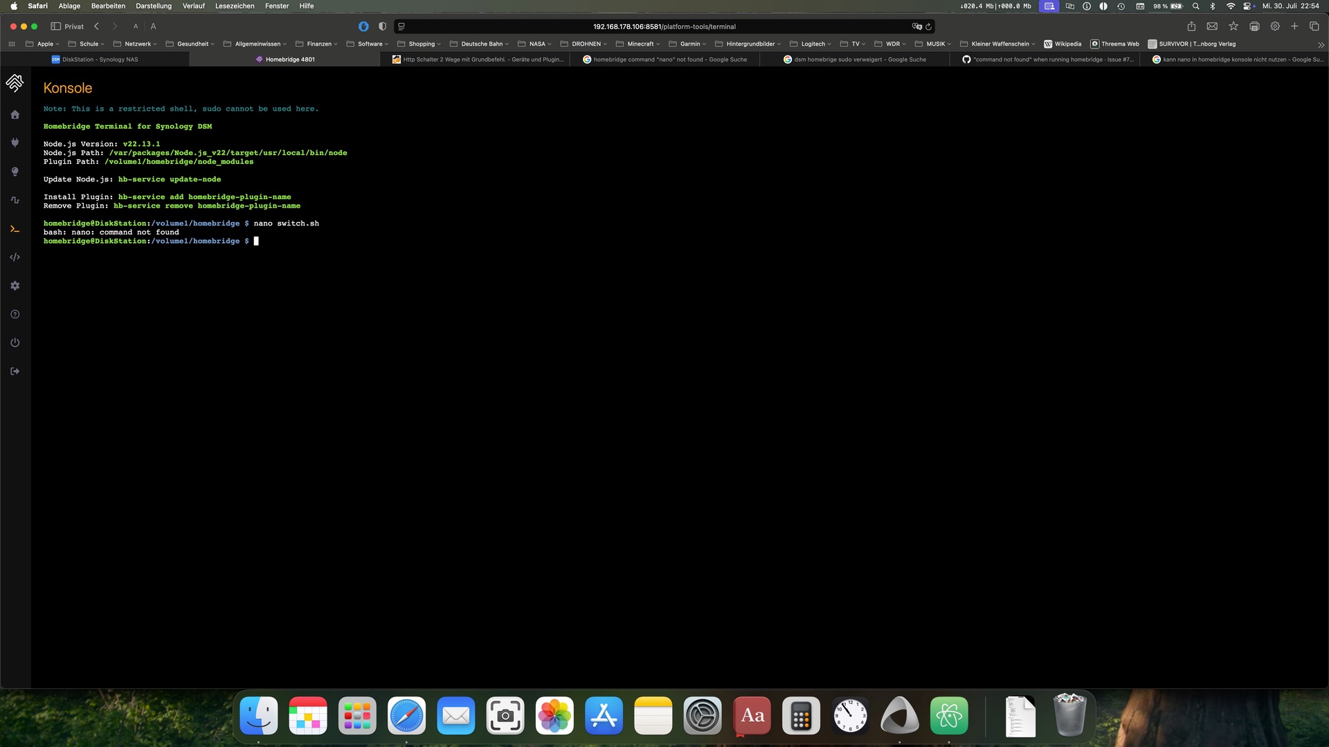Homebridge findet die mit euch erstellten Dateien Switch und Status nicht mehr. Allerdings bekomme ich nun auch die Fehlermeldung, dass der Command Nano nicht bekannt ist.