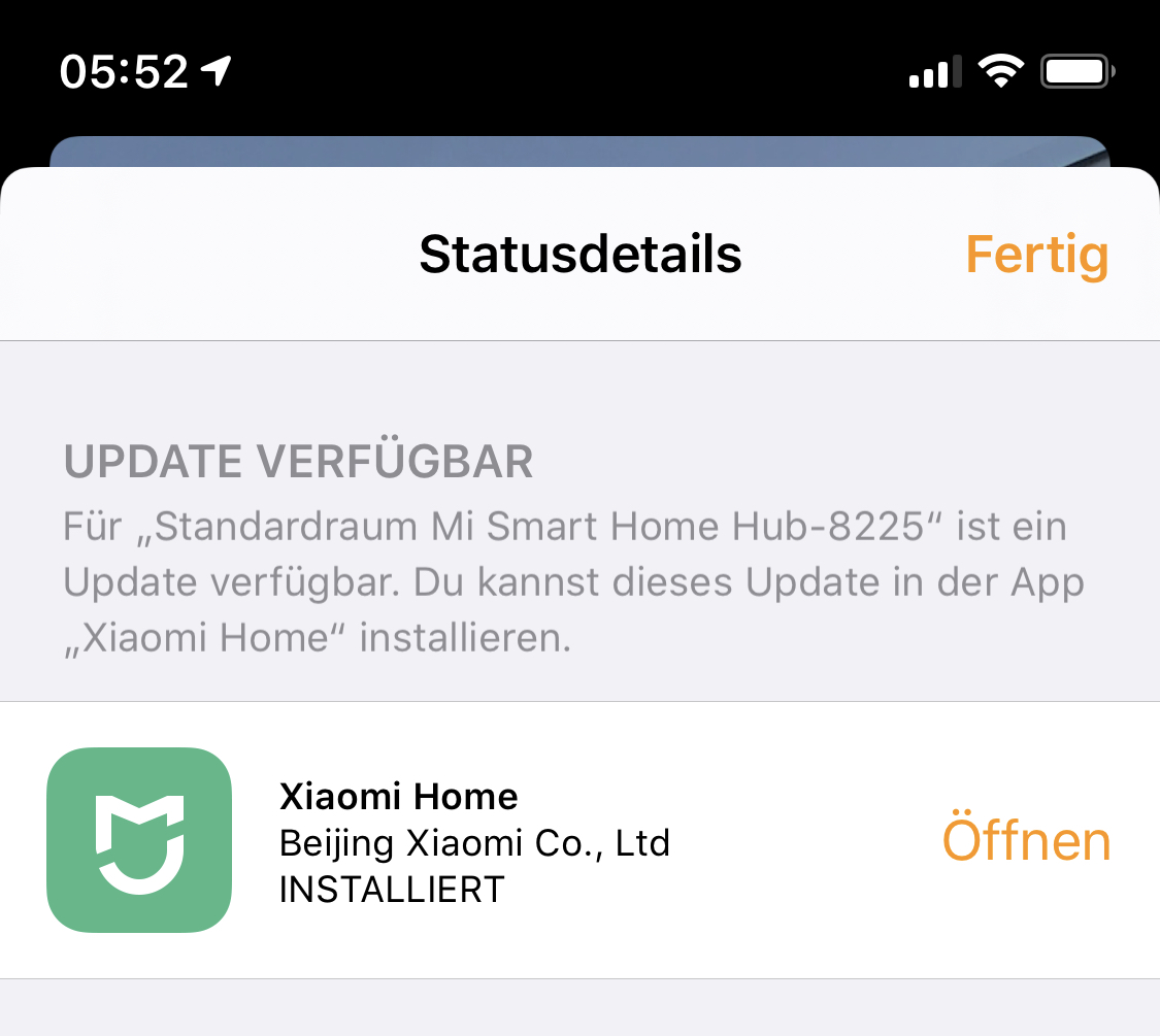 Trotzdem wird mir die Fehlermeldung in Aöpple Home angezeigt, dass ich ein Update durchführen soll.