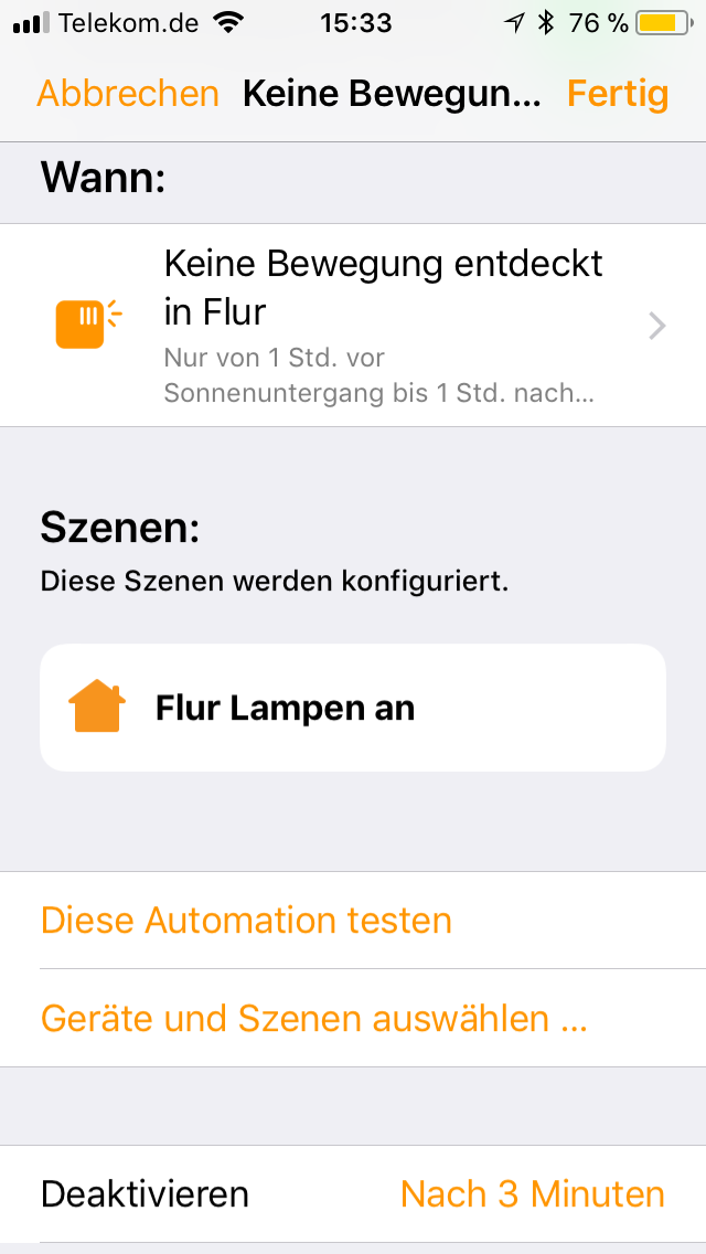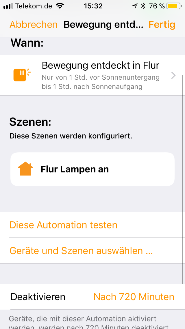 - Weniger Geräte in HomeKit (=> bessere Performance, höhere Zuverlässigkeit)
